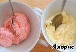Рикотту солим по вкусу и делим на две равные части. В одну добавляем сок свеклы, в другую - сок моркови или используем буквально по капле пищевые красители. В желтый ком я добавила буквально на кончике ножа лимонной цедры - замечательная получилась нота!