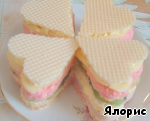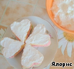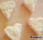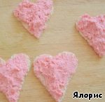 Из стопки вафельных (нежно любимых мною) коржей вырезаем формочкой сердечки.