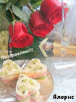 Накрывая на стол в праздники или в будни, каждая из нас вкладывает в приготовление еды для дорогих людей частицу своей души, тепло сердца. Прекрасный весенний праздник 8 марта - чудесный повод порадовать близких вам людей, постараться их удивить. С любимым всеми дамами шампанским эта закуска обязательно понравится всем собравшимся за вашим хлебосольным столом!
