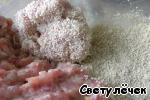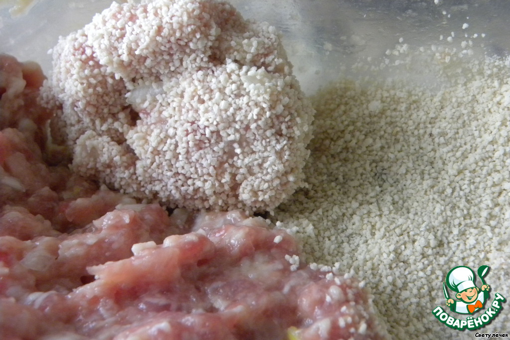 • Делаем фарш как на котлеты, берём немного и обваливаем в панировочных сухарях