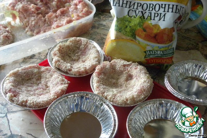 • Фарш выкладываем в формы для кексов и ставим на 30 мин. в духовку