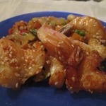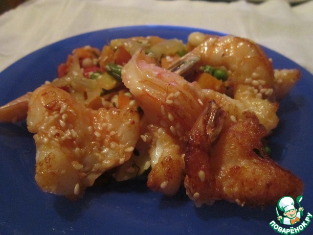 Восхитительный дуэт - креветки в хрустящей кунжутной панировке и апельсиновый соус. Рекомендую! Исключительно хорошо сочетается с белым сухим вином. Соус советую взять на заметку. Подойдет не только к морепродуктам, но и к рыбе, курице. Рецепт La Perla, ЖЖ
