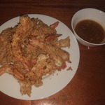 Обжаренные креветки складывать на бумажное полотенце. Подавать горячими с апельсиновым соусом.