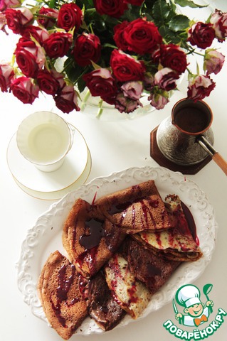 Как и обещала, я уже с фотоотчётом!!! Ещё раз вам спасибо за отличную идею. У нас с мужем вчера была годовщина свадьбы, так я ему завтрак в постель принесла. Ваши замечательные блинчики с клубничным вареньем собственного производства, чашечку кофе, мужу очень понравилось. Блинчики делала по своему рецепту, но не сомневаюсь, что и ваши очень вкусные!!!