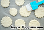 Выложить на противень, застеленный пергаментом, смазать молоком (или яичным желтком). Часто наколоть вилкой, чтобы слойки были не слишком пышные. Выпекать при температуре 190*С 15-20 минут до золотистого цвета.