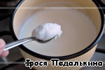В невысокой кастрюле вскипятить 1 стакан молока, уменьшить огонь.