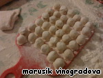 Затем лишнее тесто убираем, а равиольки извлекаем из пельменницы и выкладываем на посуду, посыпанную мукой, убираем в морозилку.