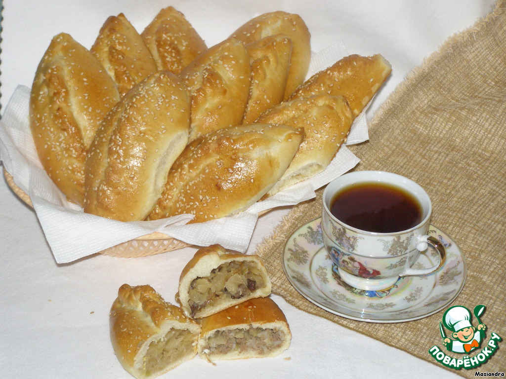 Чтобы взять пирожок именно с той начинкой, которая нравится - советую формировать пироги с разной начинкой в разных формах - швом вверх, вниз, с разными посыпками. -