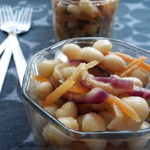 Рецептом этого салата со мной поделилась моя невестушка. Простой, но вместе с тем вкусный и сытный. Остроту каждый может регулировать в соответствии со своими кулинарными пристрастиями. Совершенно спокойно этот салат может быть применим в пост, да и за праздничным столом всегда любим и востребован.