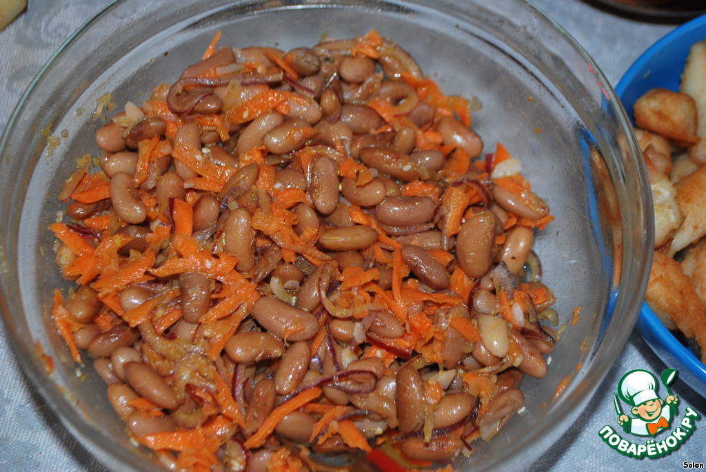 В самый раз подходит соотношение фасоль к морковке-луку 1:3. Ну это для меня)