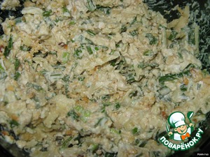• Чеснок измельчить, добавить вместе с майонезом к крекерно-сырной массе.