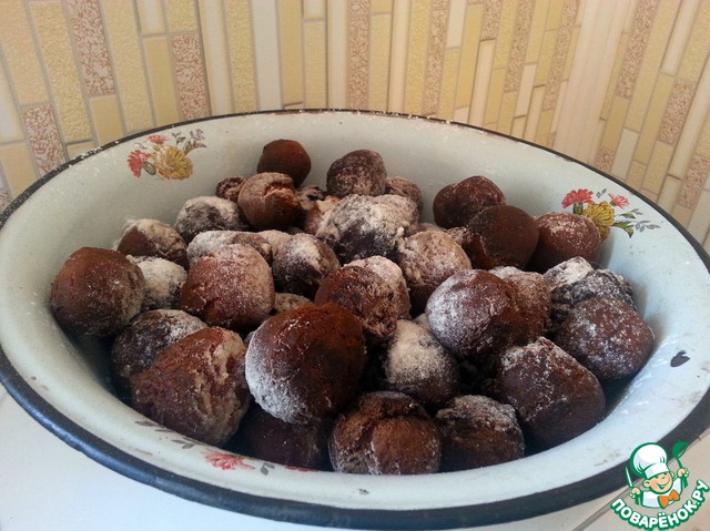 Готовое тесто разделить на две части, каждую скатать валиком и нарезать кусочками, из которых скатать шарики диаметром 1,5-2 см.