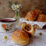 Если же выпечка несладкая - дрожжей от 4ч. л. до 1 ст. л - в тесте они чувствоваться не будут. Сахар и соль - как по рецепту. У меня начинка несладкая.