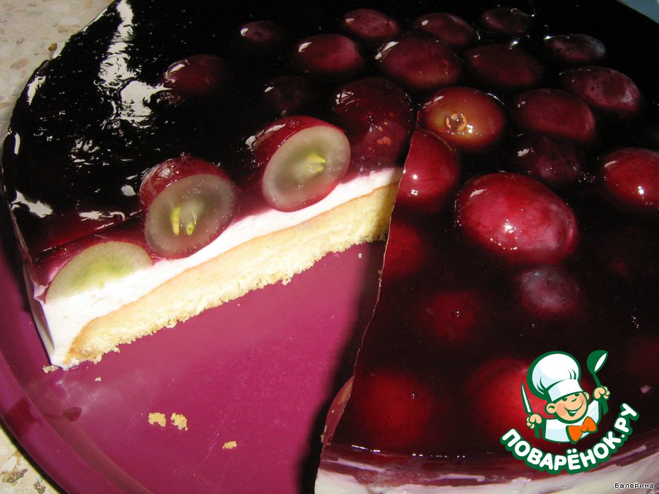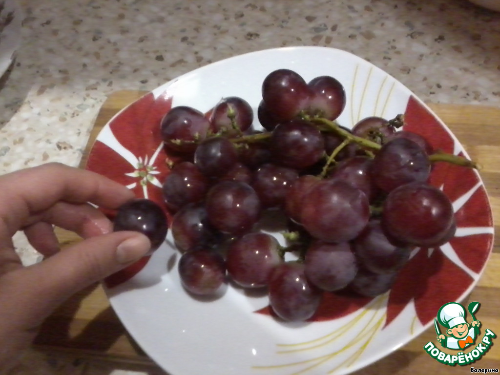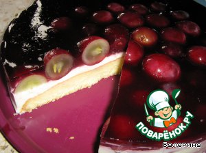 Его приготовить по инструкции, используя виноградный сок. И залить поверх винограда. -