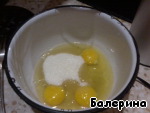 Теперь печем бисквит. Яйца смешиваем с сахаром. -