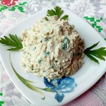 , если побольше положить - тоже, думаю, неплохо получится). Тщательно перемешиваем со сметаной, солим по вкусу, и - в салатницу.