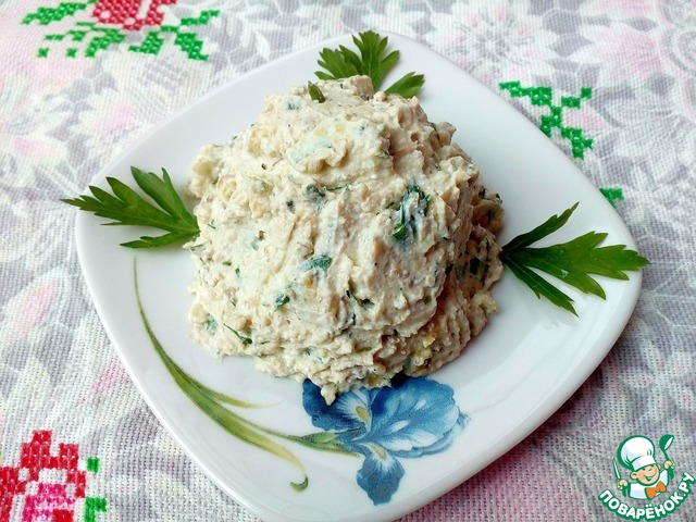 Творог должен быть хорошо отжатым, поэтому предварительно можно положить его в ситечко с марлей, чтобы стекла лишняя сыворотка (я делала из скисшего молока - около литра довела до кипения, чтобы створожилось и откинула на сито).