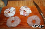 Куриное филе слегка отбила и вырезала из него вот такие "бублики", посолила, поперчила и обернула полоской бекона.