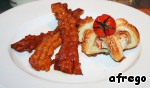 Я ещё отдельно на сковородке-гриль обжарила по 3 полоски бекона и подавала такими порциями.