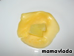 На сырный кружочек положить немного ананасов и пальцами сформировать мешочек.