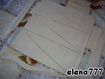 • Тесто раскатать в квадратный пласт, толщиной 0,5см, разрезать на 3 равные полоски. Полоски разрезать вдоль на треугольники.
