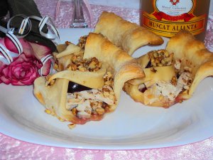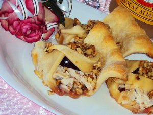 Милые дамы, хочу предложить вам обалденную закусочку к белому вину. Мне хотелось сотворить что-нибудь такое-эдакое, и получилась вот такая милая весенняя импровизация - хрустящая золотистая основа... курочка с клюквенно-медовым соусом, да под сочной ароматной сливой, да всe это присыпанное орешками... ммм... шикарная закуска!!! Заходите, угощайтесь!!!