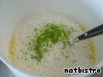 Добавить кокосовую стружку, растопленное сливочное масло, цедру лайма и ликер. Оставить смесь на 10 минут, чтобы кокосовая стружка немного набухла.