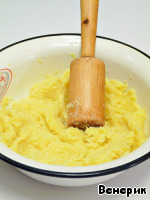 Достать картофельное пюре из холодильника, руки смазать растительным маслом, налепить котлетки (размером с яйцо).