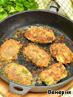 Разогреть в небольшой сковороде растительное масло, слоем примерно в 1.5 см. Обжарить котлеты небольшими порциями на сильном огне до золотистого цвета, по 2 минуты с каждой стороны.