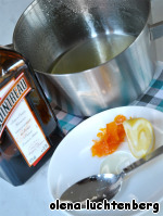 Из уже остывшего сиропа вынуть цедру, влить лимонный сок и "Куантро". -