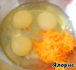 Взбиваем яйца с солью, минералкой и тертой тыквой. Советую попробовать.