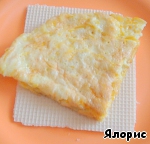 Добавляем муку, взбиваем. Выливаем смесь на горячую смазанную сковороду и выпекаем наш омлетик на самом маленьком огне под закрытой крышкой. Верхняя часть должна заметно загустеть.