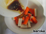 Для маринада крабовых палочек: смешать 2 ст. л. соевого соуса, 3 ст. л. растительного масла, 1 ст. л. лимонного сока, 1 ч. л. сахара, 0,5 ч. л. молотого имбиря и 1 зубчик мелко порезанного чеснока. -