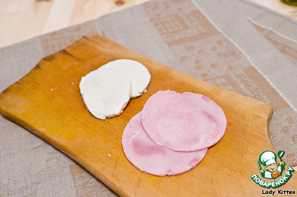 • Сыр и ветчину нарезать тонкими ломтиками.
