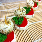 Ароматная маринованная моцарелла с нотками розмарина и лимона в паре с сочной помидоркой черри и творожным сыром - идеальная закуска к белому вину или шампанскому.