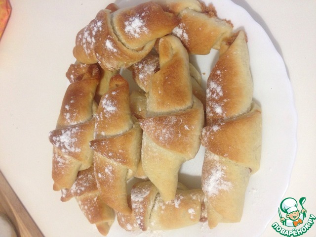 Эти рогалики экономные: для них не требуются ни яйца, ни молочные продукты. Также они хороши для тех, кто соблюдает пост. Для них также не требуется маргарин, содержащий вредные консерванты. Тесто получается хрустящее, похожее на слоеное. Рецепт мне дала моя родственница. Пересмотрела все рецепты, такого не нашла.