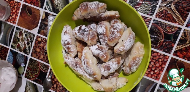 Выложить рогалики на противень, смазанный растительным маслом. Выпекать в духовке до золотистого цвета.