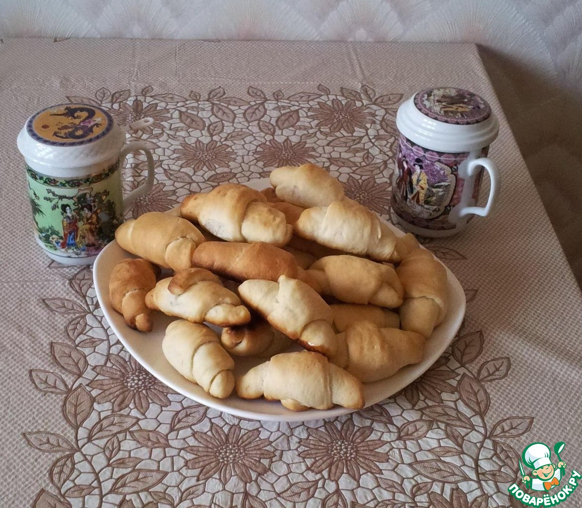 Эти рогалики экономные: для них не требуются ни яйца, ни молочные продукты. Также они хороши для тех, кто соблюдает пост. Для них также не требуется маргарин, содержащий вредные консерванты. Тесто получается хрустящее, похожее на слоеное. Рецепт мне дала моя родственница. Пересмотрела все рецепты, такого не нашла.