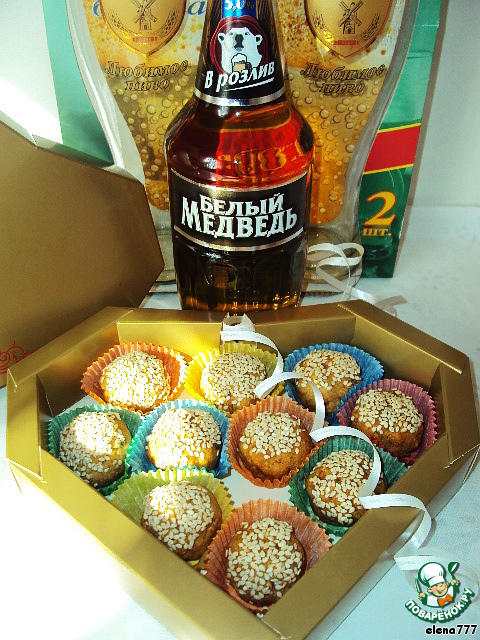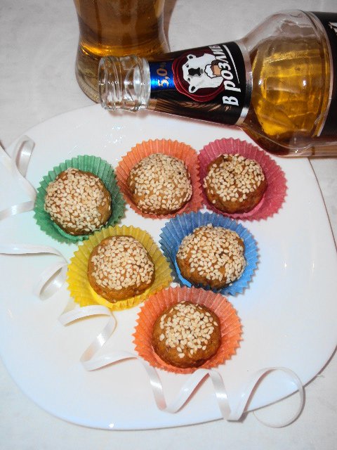Готовые шарики уложить в красивую коробочку, приготовьте холодненькое пивко (ну, или что-нибудь покрепче) и зовите своего благоверного, измученного ожиданием и истекающего обильной слюной! :-D