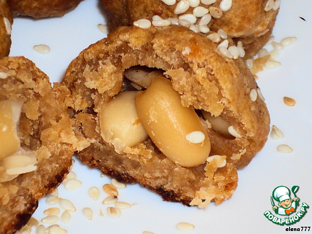 Сделать из теста шарики, величиной с грецкий орех, на ладошке его примять и положить в серединку по щепотке вырванного силой у мужа обжаренного арахиса. ;-) -