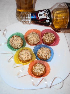 Дорогие женщины, порадуйте своих любимых мужчин и приготовьте к празднику такие золотистые шарики и увидите - ваша половинка будет вам благодарна! Да, да - эта закусочка настоящая мечта для любителей пивка (и не только)! Когда я готовила шарики, на кухне разливался изумительный аромат, а муж в предвкушении ходил вокруг да около, мечтая попить пива с новой необычной закусочкой. Но так получилось, что, пока муж дожидался, когда остынут шарики к пиву, то девочки мои перетаскали их один за другим, оставив 2 штучки на тарелочке... увидев остатки, мой муж с возмущением произнeс: "Ни чe себе, попил, блин, пивка! Хорошо, что детки пиво не выпили!" Заходите на пивцо с шариками... не пожалеете!