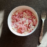 Добавила тёртый сыр ... и мне напомнило салатик из юности, правда, - с яблоком