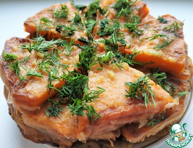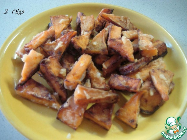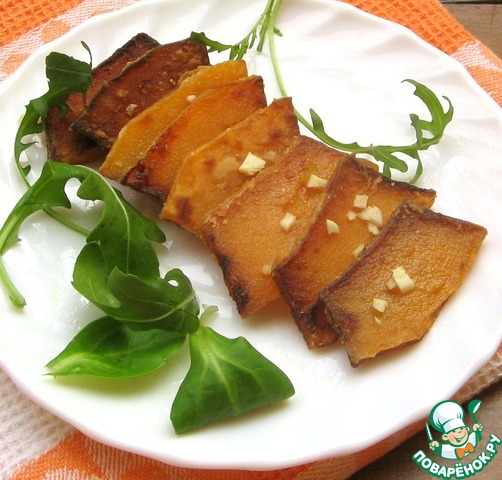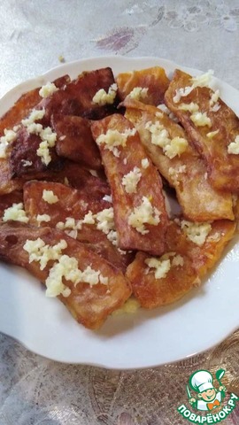 Честно, просмотрела, по-моему, все рецепты, где встречается сочетание тыква-чеснок... Такого не нашла, если ошиблась - поправьте, поскольку рецепт очень простой, но ОЧЕНЬ вкусный!!! Рецепт нашла в кулинарной книге Г. Поскребышевой, понравился всем, даже моему папе, который тыкву не ест в принципе!!! Вкусно и теплом, и в холодном виде!