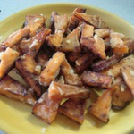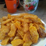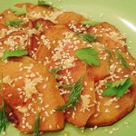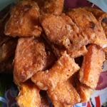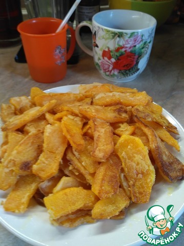 Обжаривать тыкву порциями. Выкладывать на бумажное полотенце, чтобы ушел лишний жир.