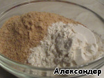 Смолоть орехи и печенье в крошку. Печенье должно быть с большим содержанием жира, типа "Курабье". Можно и менее жирное, тогда пирог будет суше.