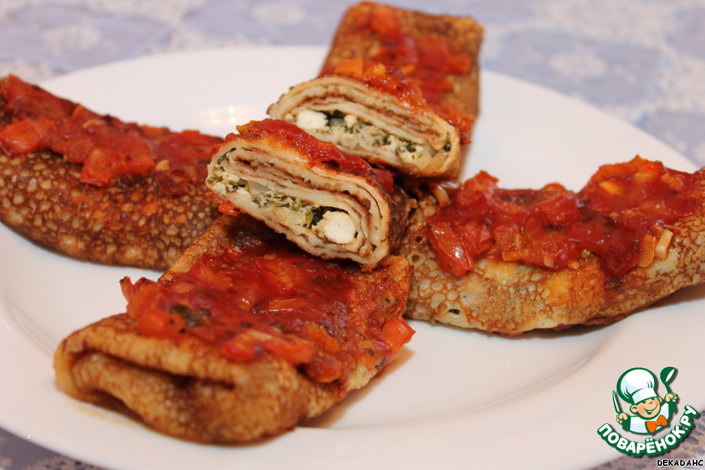 Рецепт «Блинчики со шпинатом в томатном соусе»:
