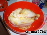 От души натираем полученной смесью нашу птичку и и оставляем ее минут на 15-20, чтобы немного пропиталась. В емкости с карри и маслом должна остаться где-то одна столовая ложка смеси.