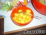 В оставшуюся смесь добавляем половину пачки ананасов, выдавливаем оставшийся чеснок, перемешиваем.