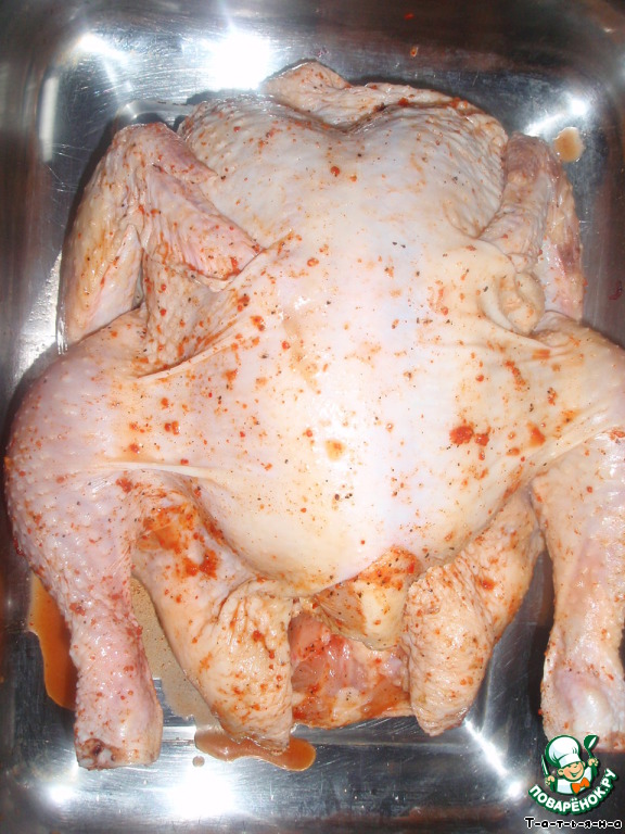 Натереть курочку солью, перцем, паприкой, сбрызнуть соком 0,5 лимона. |