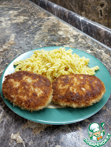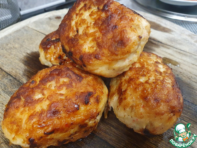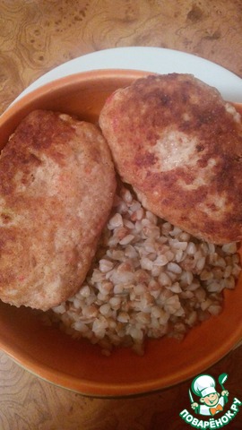 Сформировать котлетки, обвалять в панировочных сухарях (которых у меня как оказалось не было, обошлась мукой) и обжарить на растительном масле.